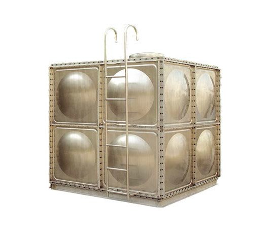 2. 結構獨特合理:高強度的沖壓板及箱內分布均勻的不銹鋼拉筋使箱體承壓均勻合理。水箱的進水管、出水管及溢流管的管徑、位置由設計決定。