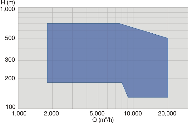 產(chǎn)品性能 流量:~20000m3/h 揚程:~700m 介質(zhì)溫度(T):-40℃≤T<+160℃ 壓力:單級泵2.5Mpa, 雙級泵5.0Mpa 設(shè)計標準:API610